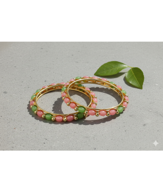 Celebrate special moments with these beautifully crafted Heritage-Inspired Children's Bangles. Designed specifically for comfort and style, these kadas feature a polished silver-toned finish embellished with a rhythmic pattern of colorful, square-cut beads in bright teal and deep pink hues.