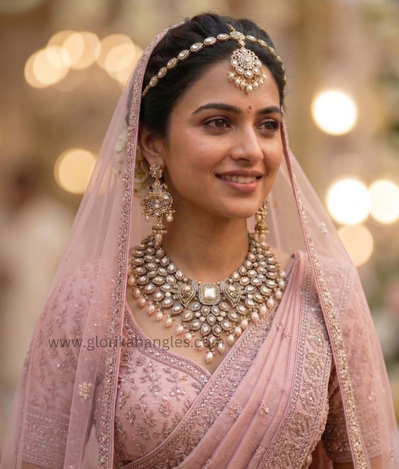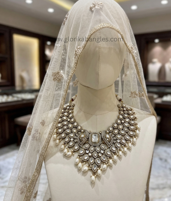 This collection is a tribute to royal Indian craftsmanship, featuring high-grade Kundan stones (glass stone foiling) and Polki-inspired cuts. Every piece is meticulously gold-plated and finished with a "vibrant antique" luster to complement heavy bridal lehengas and silked finish.