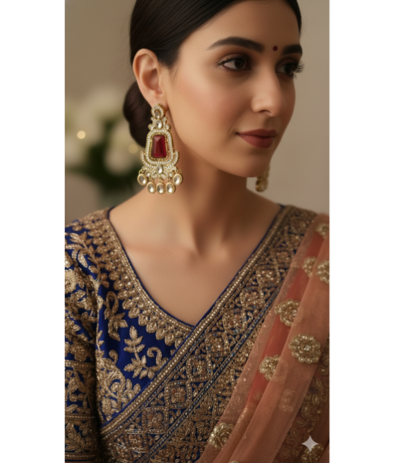 Exquisite Styling These earrings are crafted to be the focal point of your look. They pair beautifully with traditional ethnic wear such as sarees, lehengas, and anarkalis. Whether you are the bride, a bridesmaid, or a guest at a festive celebration, these earrings offer a regal finish that is both sophisticated and culturally resonant.