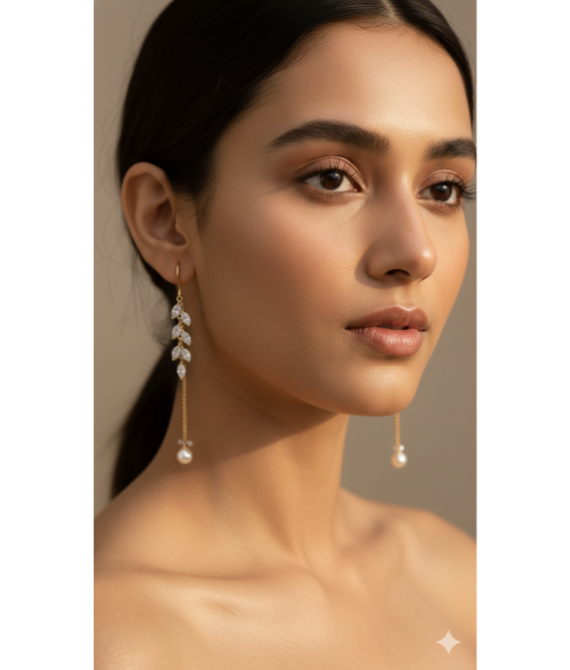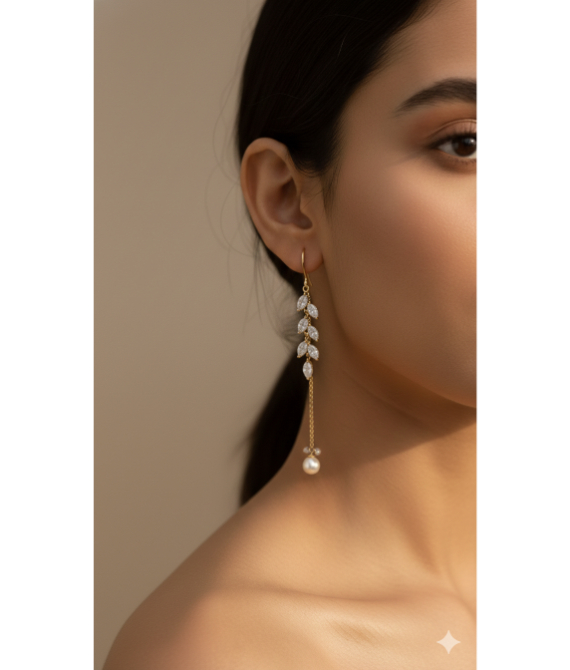 Elevate your accessory game with the Laurel Leaf Crystal & Pearl Drop Earrings. These earrings combine the structural beauty of a botanical vine with the fluid movement of a classic threader.