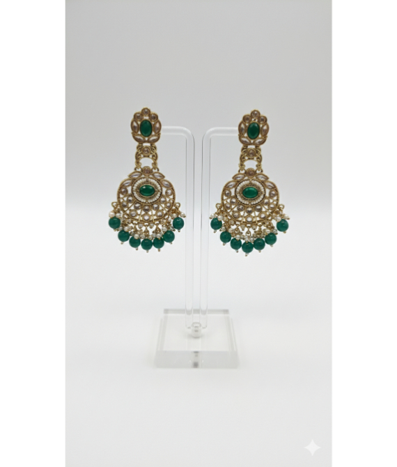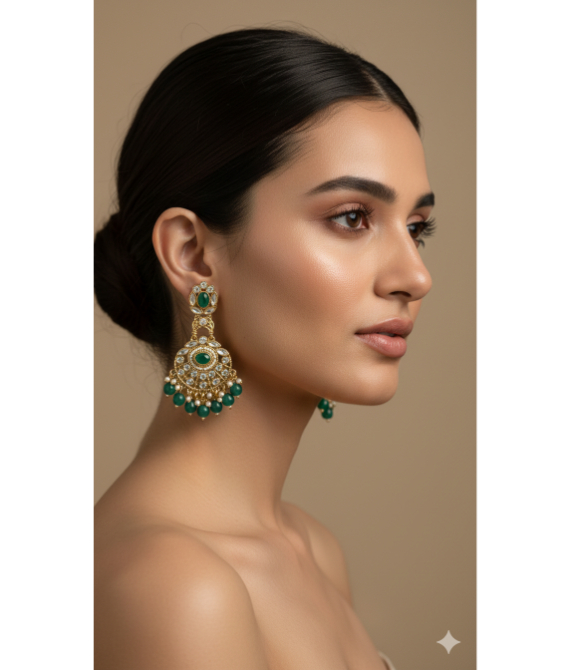 Step into a world of regal elegance with our Heritage Emerald Chandbali Earrings. These statement pieces are inspired by traditional Indian jewelry craftsmanship, blending cultural richness with sophisticated design.
