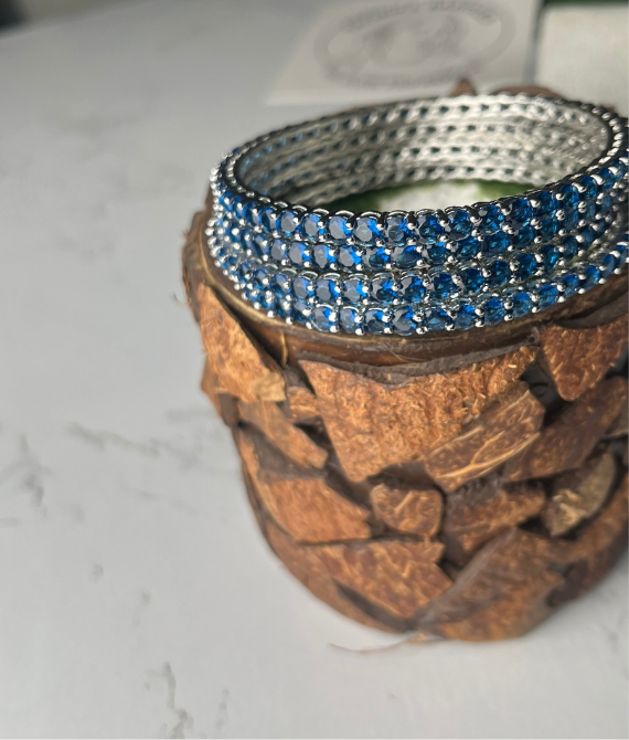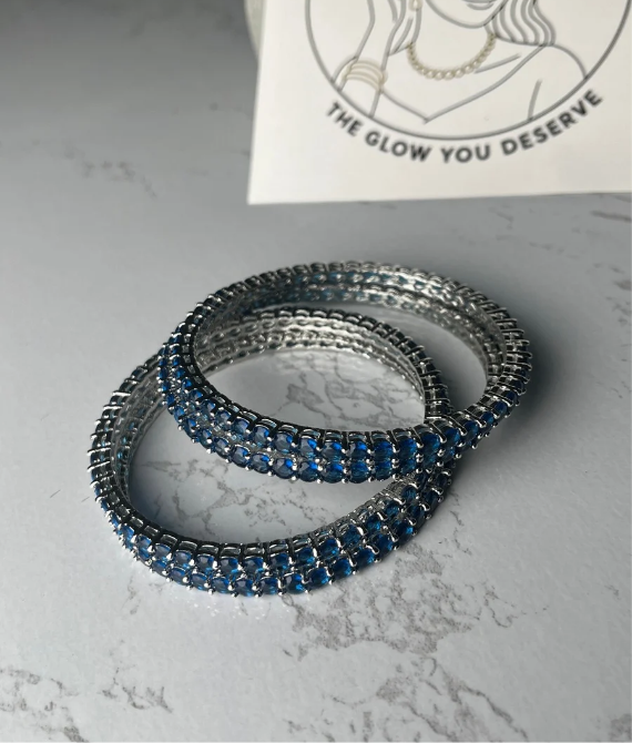 Add a touch of royalty to your jewelry collection with our Royal Sapphire Sparkle Bangles. Crafted with precision, these bangles feature shimmering deep blue stones set in a high-quality metal base that reflects elegance and sophistication.